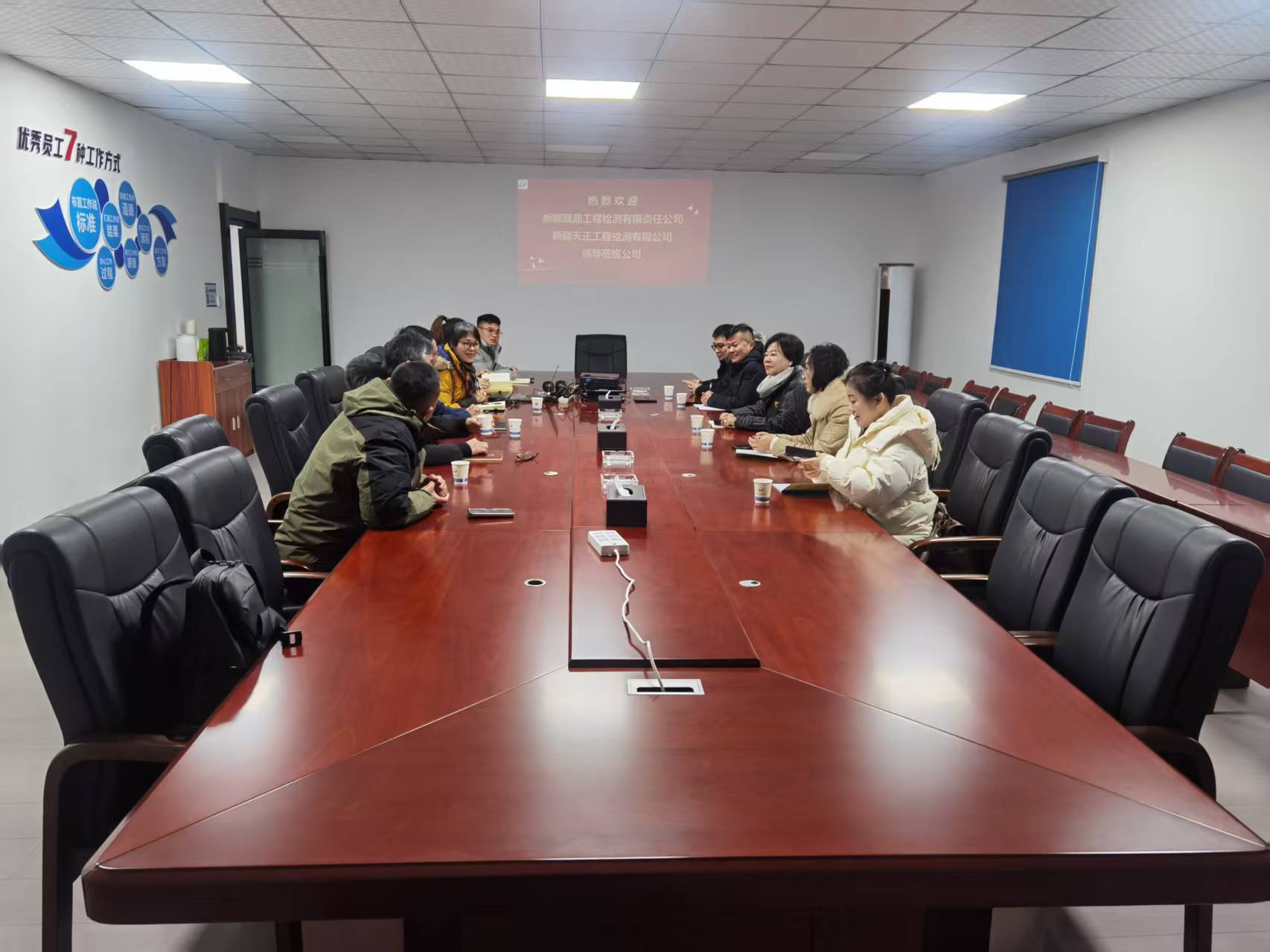 在隨后舉行的座談會上,我司相關(guān)負責(zé)人向來賓系統(tǒng)介紹了公司發(fā)展歷程、業(yè)務(wù)布局。新疆盛鼎與天正公司代表分別分享了新疆地區(qū)在特殊氣候與環(huán)境條件下工程檢測的實踐經(jīng)驗,以及其在基礎(chǔ)設(shè)施建設(shè)、能源工程檢測方面的特色業(yè)務(wù)。